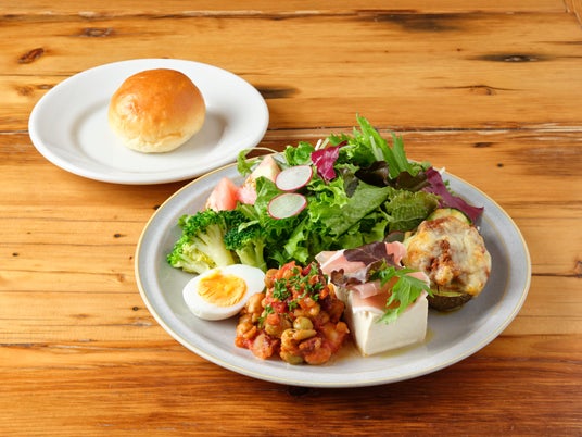 その日の気分で、わたし仕様の一皿に。メインデリ1種+サイドデリ2種を自由に組み合わせられる、人気のカスタムサラダプレート。定番デリから旬の素材を使った季節メニューまで常時数種類をご用意し、“今日はどれにしよう?”と選ぶ過程そのものが楽しい一皿です。プレートにはスープと、ライスまたはパンをセットでご用意。野菜をしっかり食べながら、満足感も得られるバランスの良い構成に仕上げました。今後は、多摩地区の食材も取り入れ、地域に寄り添ったプレートへ進化していく予定です。