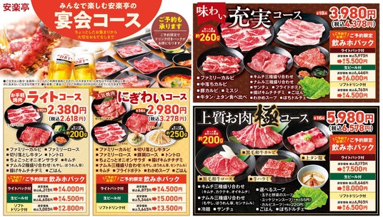 コース詳細やご予約、ご利用に関する詳細は 安楽亭ホームページにてご確認ください。