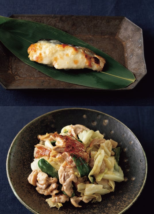 無限つゆ+マヨネーズを焼き衣にした「さわらのつゆマヨチーズ焼き」とマヨネーズでいためてガツン味のスタミナおかず「和風回鍋肉」