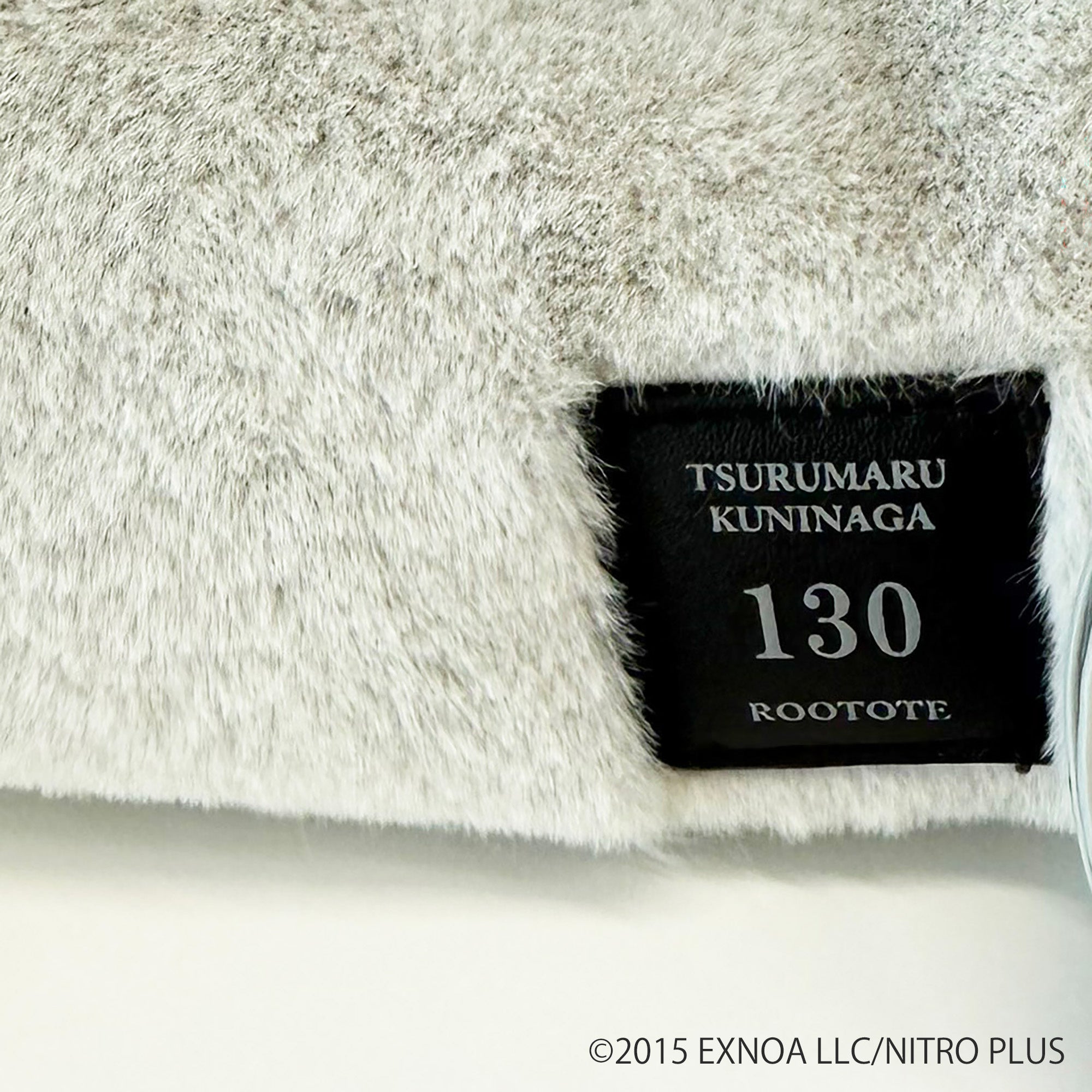 鶴丸国永をイメージした淡いグレーを基調としたバッグです。鶴丸国永の刀帳番号である「130」「TSURUMARU KUNINAGA」のネームタグがポイント。