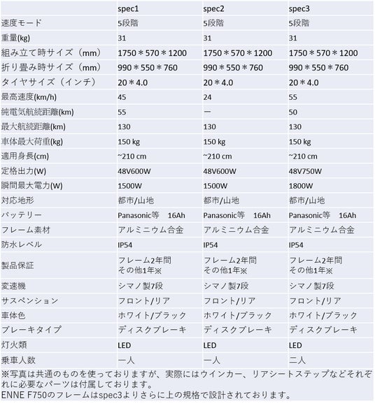 本製品はspec1と2に使用されるモーターの制限を解除したフルパワーバージョンの750Wの原付2種です。750Wのモーターがあればほとんどの坂道も問題なく上ることが可能です。試験的な走行では赤坂の三分坂でも余裕で登りきることができました。