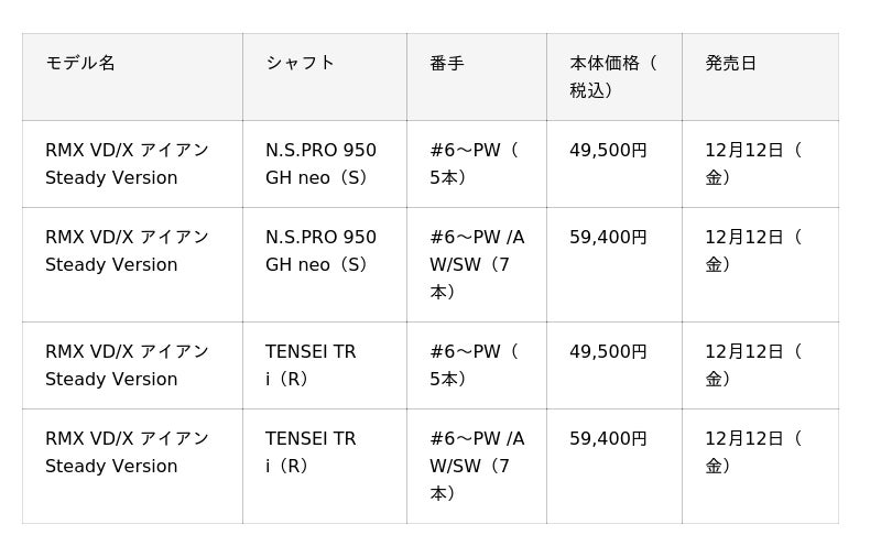ゴルフクラブ『RMX VD/X アイアン Steady Version』