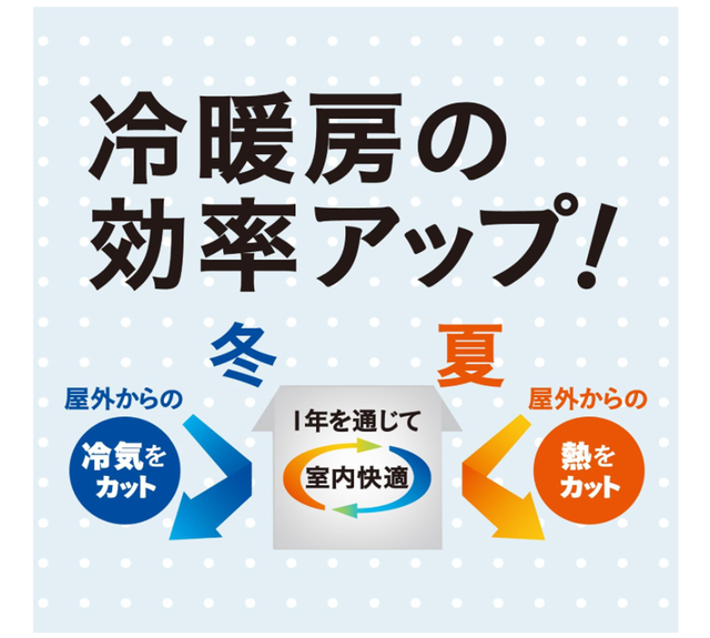 冬は窓からの冷気を遮断して暖房効率を上げ、夏は日差しや熱を遮って室内の温度上昇を抑えるのに役立ちます。