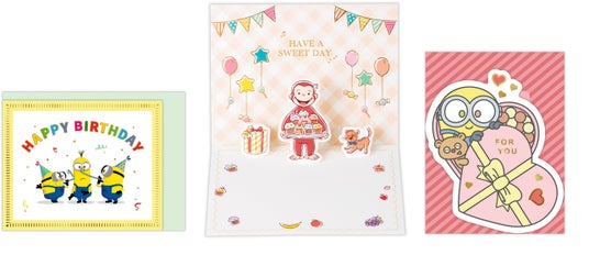 人と直接会う機会が増える中で手渡しニーズが増えていることを受け、「ミニオン」からは可愛らしいミニカードが登場。「おさるのジョージ」からは、大人も使いやすいやわらかな色合いのバースデーカードが登場します。