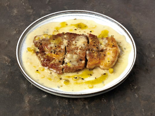 「かごしま黒豚のグリル 青唐辛子とゴルゴンゾーラのソース 」¥1,600(税込 ¥1,760)