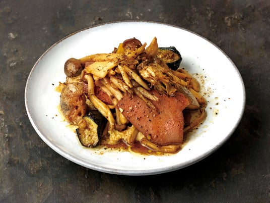 「キノコと旬野菜 レバーの温製サラダ バルサミコドレッシング」¥1,230(税込 1,353)