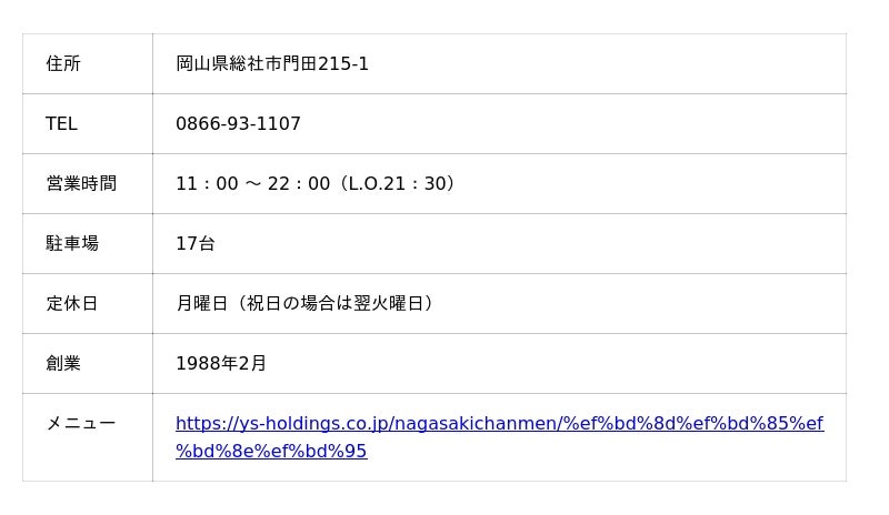 山口県17店舗 広島県5店舗 島根県1店舗 岡山県8店舗 兵庫県1店舗https://ys-holdings.co.jp/nagasakichanmen/shop
