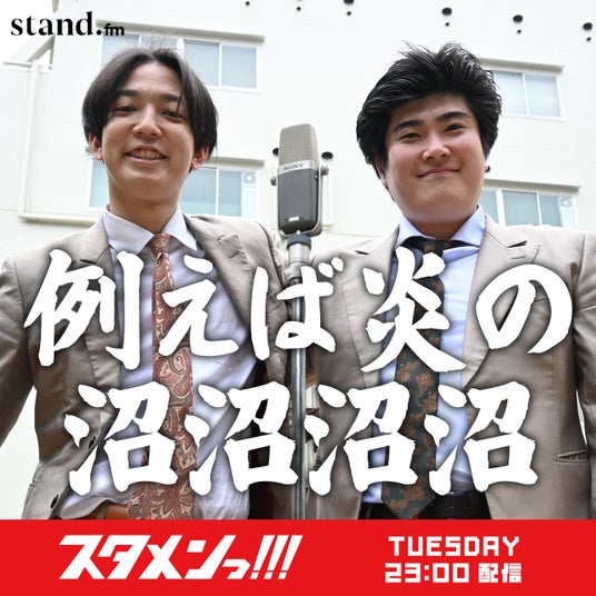 ※stand.fmの既存番組「例えば炎の沼沼沼沼」がリニューアルして「スタメンっ!!!」に仲間入り!新たにメンバーシップを加え、例えば炎が火曜日のMCを担当します。