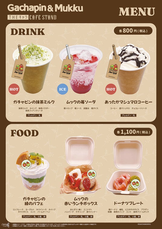 「ガチャピン・ムック」THEキャラ CAFE STANDでは、グランドメニューに加え「ガチャピン・ムック」の期間限定オリジナルメニューをご用意して皆様のご来店をお待ちしております。