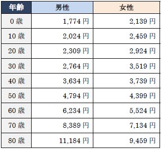 ●保険料例(個別取扱/月払/口座振替/定額払/保険料払込免除特約なし)