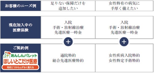 今回、新たに発売する<あんしんパレット>(以下<あんしんパレット>)では、お客様一人ひとりのニーズに柔軟にお応えするため、保険商品としてパッケージ化されたプランだけではなく、その時必要な保障を特約1つからご加入*いただけるようにしました。