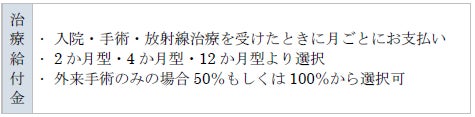 (1) 「2か月型・4か月型・12か月型」の治療給付金をラインアップ