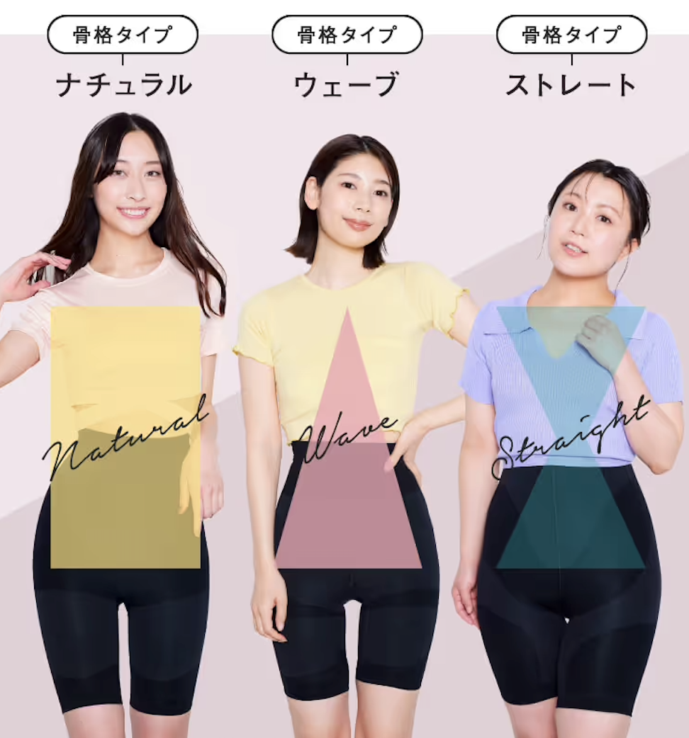 その結果、骨格タイプやヒップラインの形状に合わせて、一人ひとりが最も美しく見えるための設計を行ったのが、「骨格タイプ別ガードル」です。