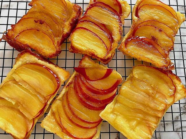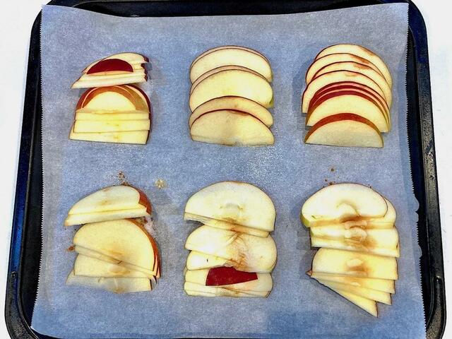 パイシートの上にりんごをのせて焼くのではなく、りんごにパイ生地をのせて焼くのがおすすめ。そのほうが中までしっかりと火が入るような気がします。