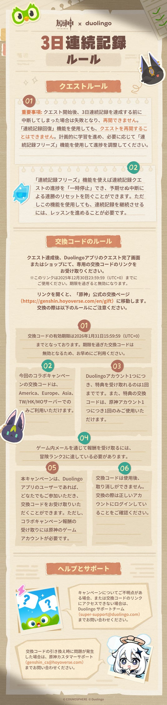 「原神 × Duolingo 3日連続記録のクエスト」概要