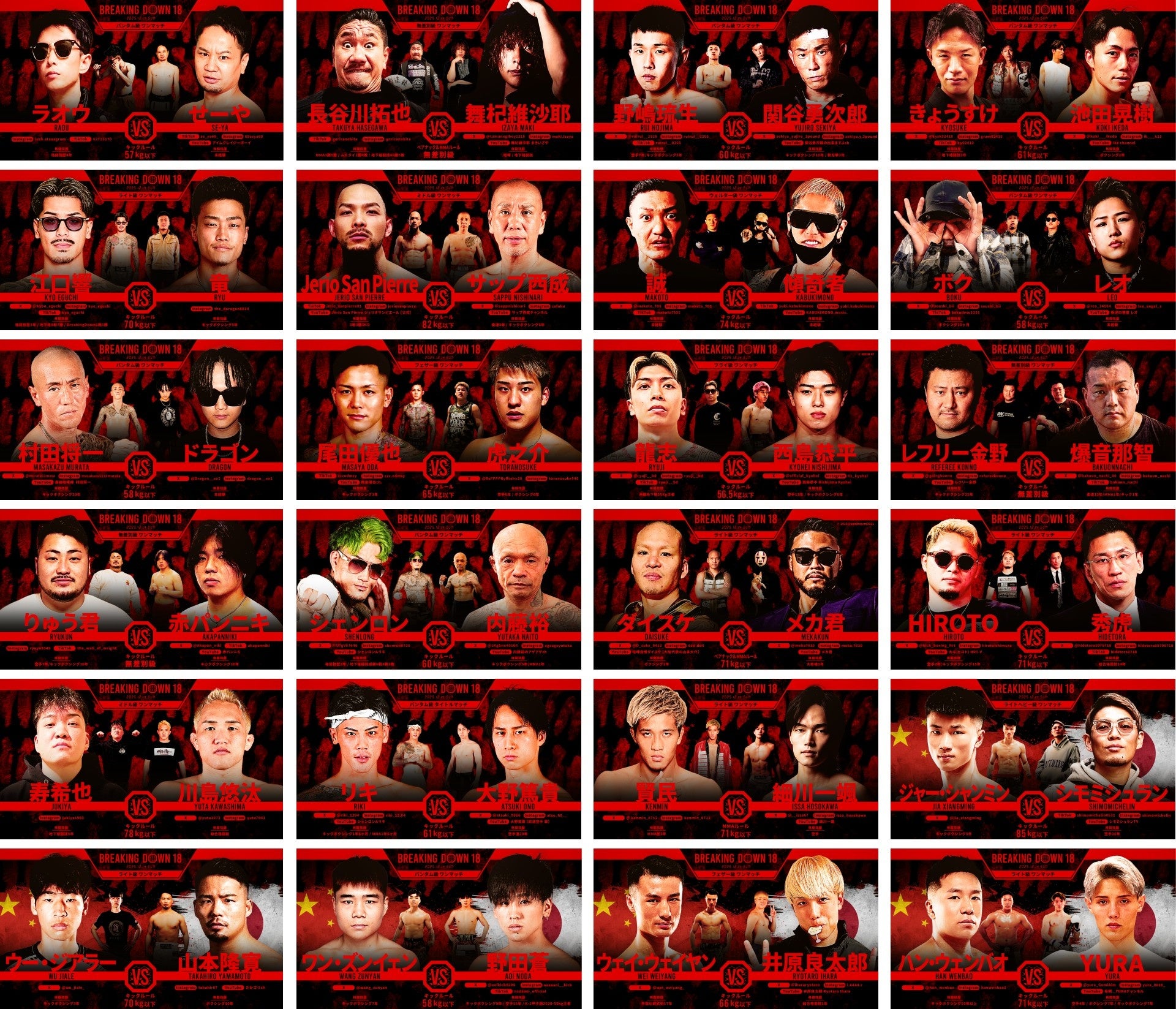 BreakingDown株式会社(本社:東京都港区、代表取締役:朝倉未来)は、2025年12月14日(日)にさいたまスーパーアリーナ(コミュニティアリーナ)で開催する格闘技イベント『AMBiQUE presents BreakingDown18』の全対戦カードを本日発表いたしました。