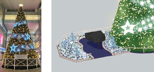 〇ピアノとツリーが織りなす特別な空間相模大野ステーションスクエアのクリスマスツリーと一体となるようピアノを設置します。