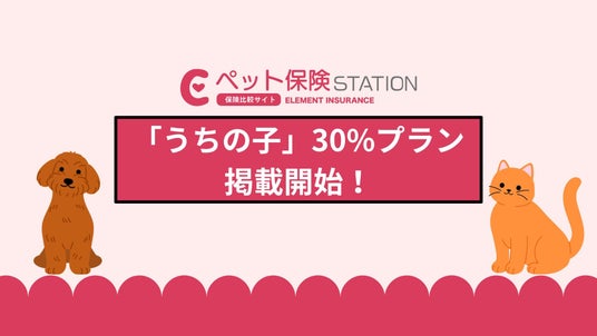 《株式会社エレメント》(本社:神奈川県川崎市、代表取締役:近藤勉)は、ペット保険比較サイト「ペット保険STATION(https://www.pets-station.info/)」において、「アイペット損害保険株式会社(本社:東京都江東区豊洲・代表取締役 執行役員社長:安田 敦子)」(以下「アイペット損保」)が新たに提供を開始したペット保険「うちの子」30%プランの取り扱いを開始しました。
