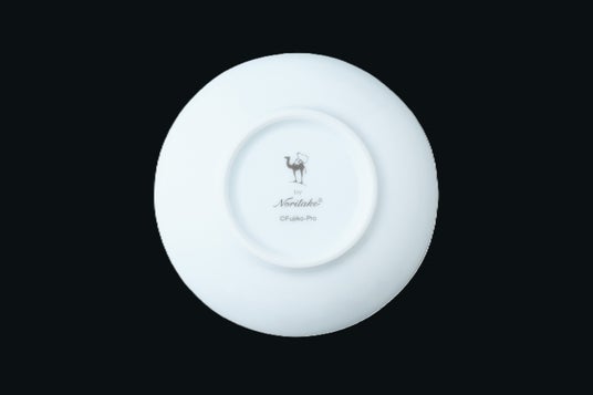 直径約9.8cm、かわいくて使いやすいミニサイズの限定品。裏面には『サライ』の駱駝マークと「ノリタケ」ブランドのロゴマークが記されている。