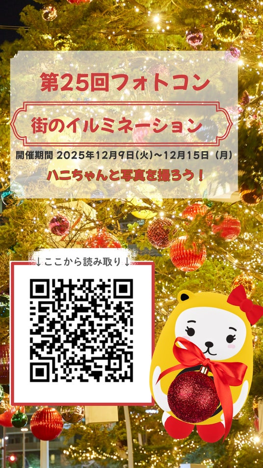 今回は “ハニちゃんとイルミネーション” をテーマに、街なかの光景、日常のきらめき、思わず笑顔になる瞬間など、冬を彩る作品を全国から募集します。入賞者にはここでしか手に入らないオリジナルグッズをご用意。ファン参加型で季節感を楽しめる人気企画として、今年もSNSを中心に広く展開してまいります。