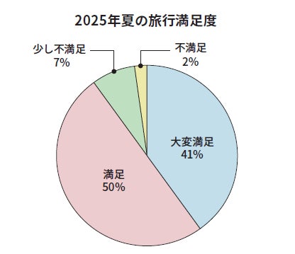 なお、今年の夏の旅行満足度は「満足」「大変満足」を合わせて9割以上と、昨年から引き続き高い結果となりました。キャッシュレス決済の活用や、旅行先や宿泊、移動手段の工夫などをして旅行を楽しまれたかたが多いことがうかがえます。
