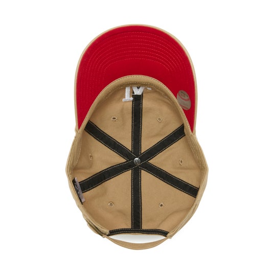 ロイヤルはバイザー裏にハートと同色のピンクを、カーキとネイビーには同色のレッドを採用。キャップ本体の色とバイザー裏の差し色との組み合わせが、コーディネートにさりげないアクセントを生みます。シルエットには、柔らかいクラウンとカーブしたバイザーが特徴のアジャスタブルキャップ「CLEAN UP」を採用。頭の形を問わず心地よくフィットし、幅広いテイストの装いに自然と馴染むデザインです。