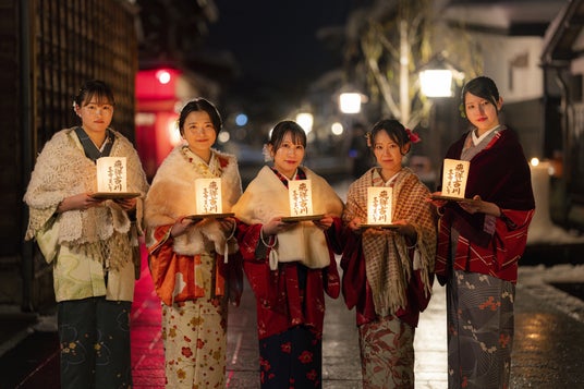 極寒の冬、飛騨古川の情緒ある町並みは、やわらかな灯りに包まれ、幻想的に彩られます。