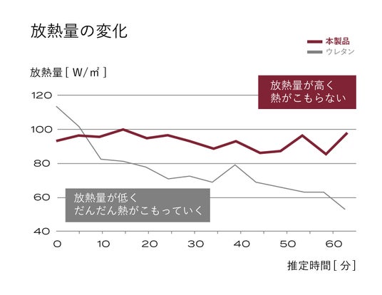 良質な睡眠を得るためには、寝床内の温度と湿度を適正に保つことが重要です。通気性のよい素材が頭部の熱を放熱し、深い眠りへ導きます。90%以上が空気層でできているので睡眠時に発生する熱や湿気がこもらず睡眠に最適な温度・湿度をコントロールし、快適な睡眠環境をつくります。ウレタン素材やフェザー素材の枕と比較して格段に優れる通気性の良さで朝まで快適に眠ることができます。