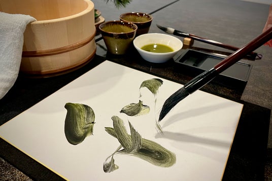 黒い墨と、足柄茶が織りなす鮮やかな緑色のグラデーションは、まさに新春にふさわしい、彩り豊かな作品を生み出します。このユニークな体験を通じて、参加者は地域の特産品である足柄茶の魅力と、その健康効果にも触れることができます。