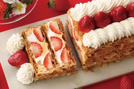 今回、青山本店で展開するナポレオンパイは「いちごさん」が主役。みずみずしく甘い苺、サクサクのパイ生地、なめらかなクリームが重なり合う、旬の美味しさを心ゆくまでご堪能ください。
