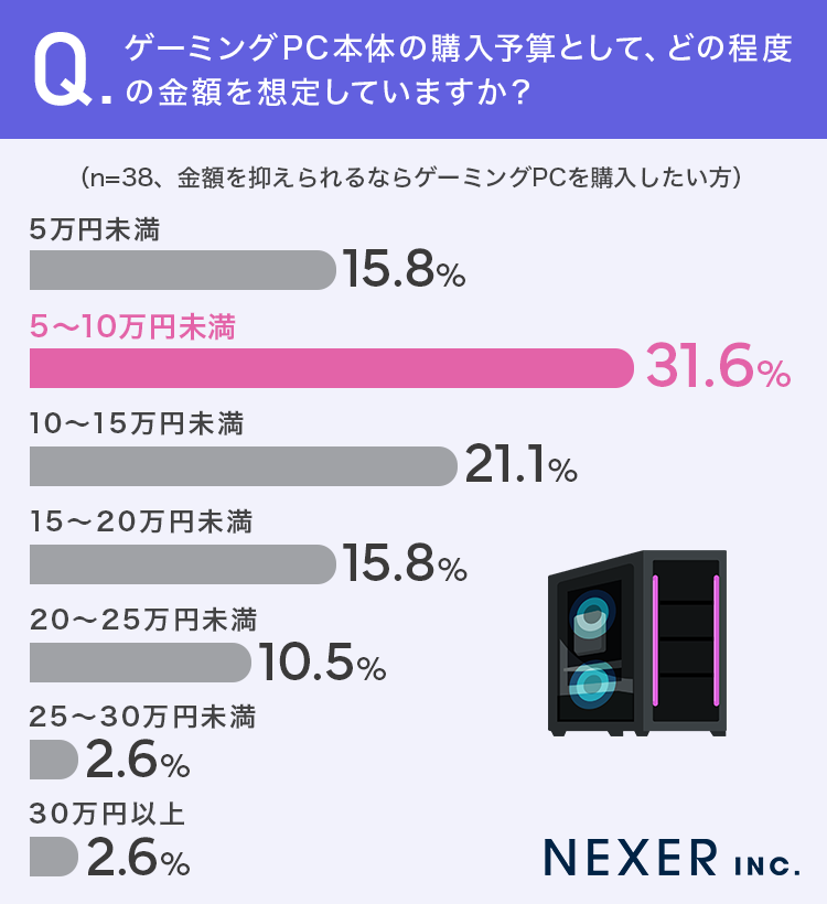 では、金額を抑えられるのであればゲーミングPCを購入したいと考えている方は、ゲーミングPC本体の購入予算はどの程度の金額を想定しているのでしょうか。