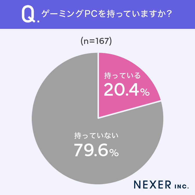 パソコンでゲームをする方の中でも、ゲーミングPCを持っている方は2割程度でした。