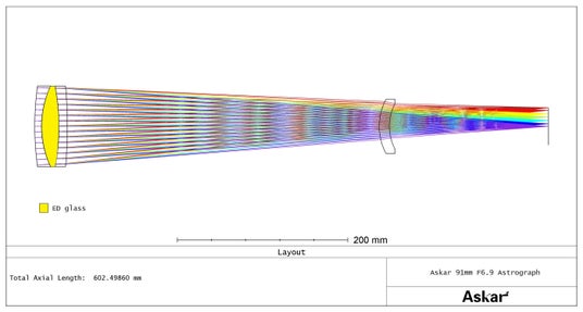 - Askar 91F鏡筒は、口径91mm焦点距離609mm、口径比F6.7のED屈折望遠鏡です。