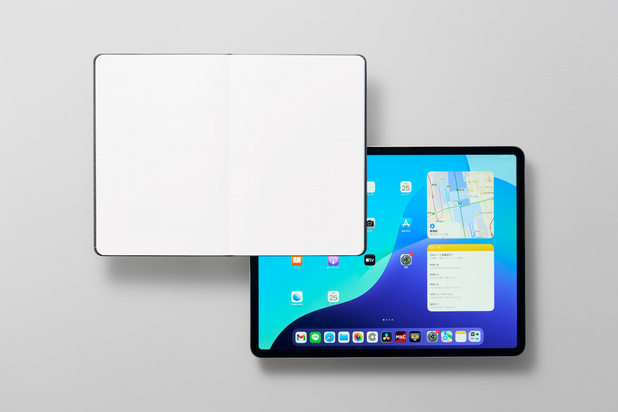 見開き13インチ・キャンバスPCやタブレットに近い見開き13インチで、向きを気にせず使えるユニバーサルデザインは、アナログとデジタルを自然につなぎ、自由な筆記と思考の連続性を両立します。