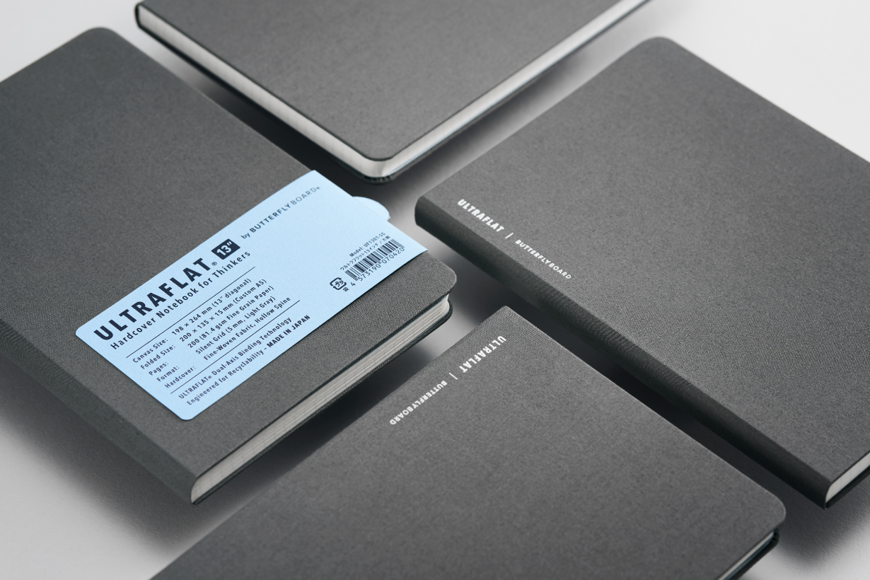 バタフライボード株式会社(神奈川県横浜市、代表取締役:福島英彦)は、独自の『2軸連動機構』により全ページがフラットに展くフラッグシップノート「ULTRAFLAT(R) 13”(ウルトラフラット13インチ)」を、2025年12月9日(火)より応援購入サイトMakuake(マクアケ)にて先行販売致します。