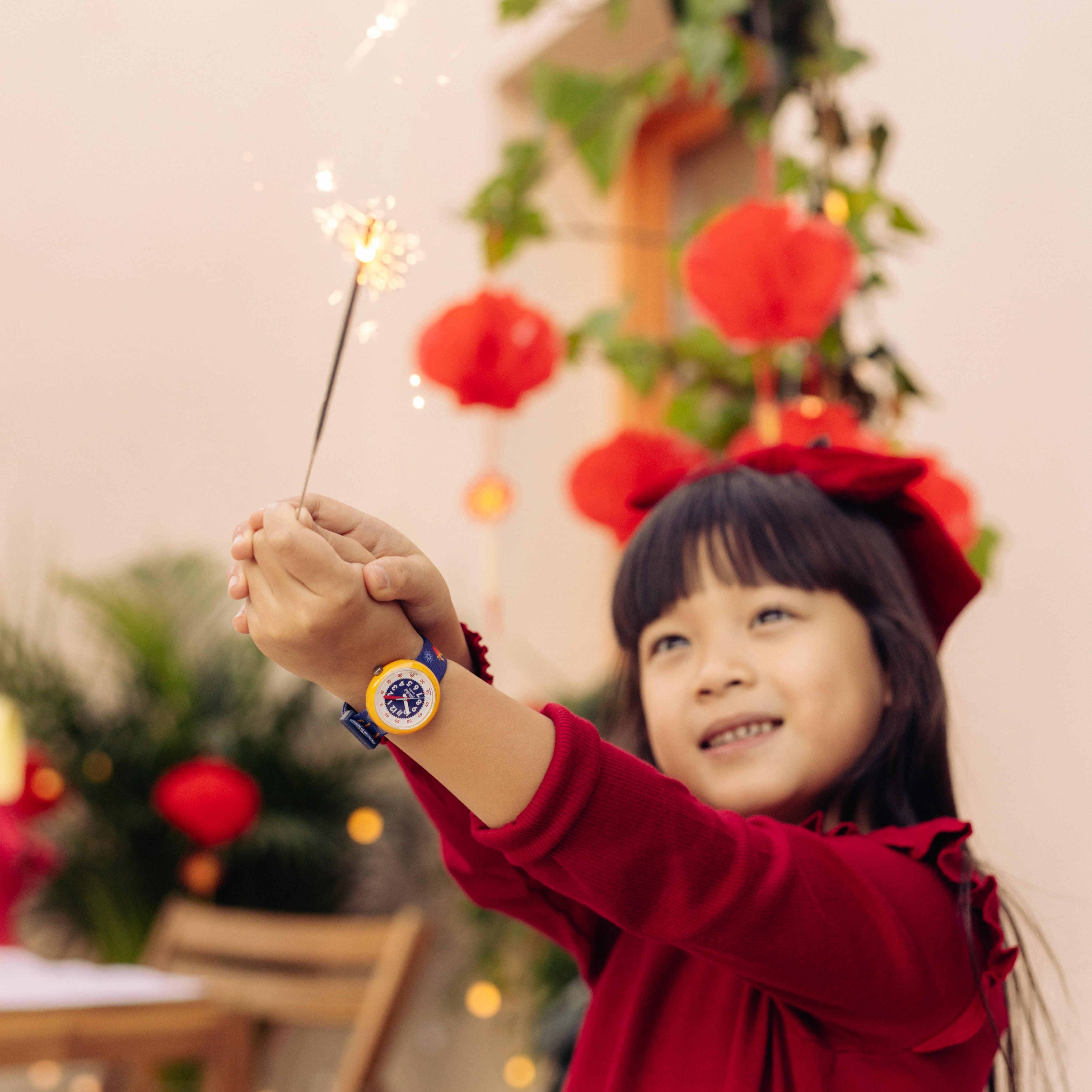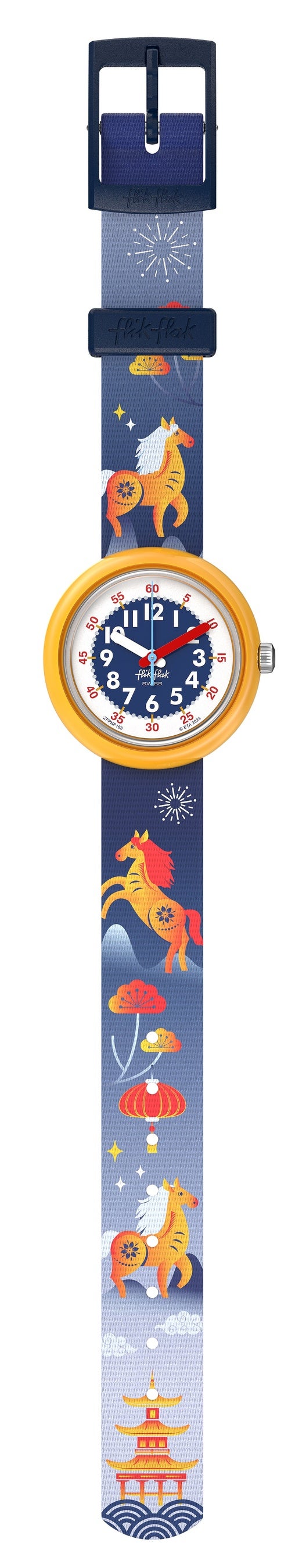 Flik Flakはキッズウォッチ「FLIK FLAK YEAR OF THE HORSE」とともに、2026年の春節をお祝いします。幸運や喜びを象徴する色合いを鮮やかにデザインされた、春節を祝う馬モチーフのキッズ向け時計です。