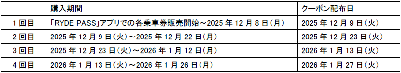 各クーポン配布日から、2026年2月15日(日)の運行終了時刻まで