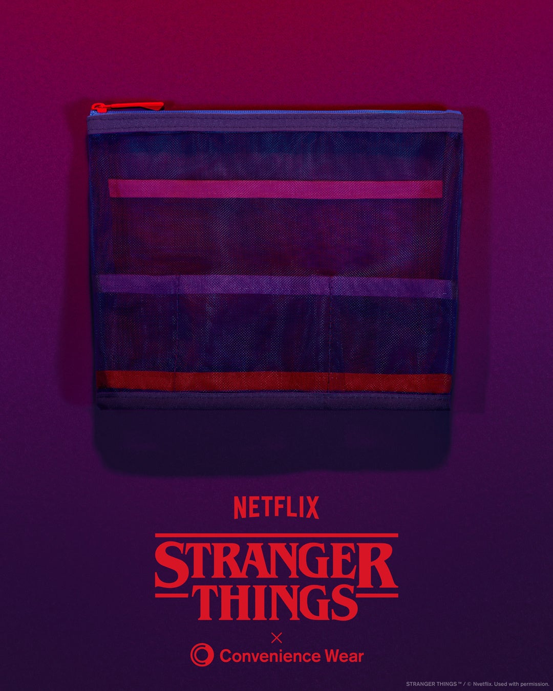 【内容】「ストレンジャー・シングス 未知の世界」をモチーフに配色したメッシュポーチです。人気のメッシュポーチで初のコラボアイテムです。