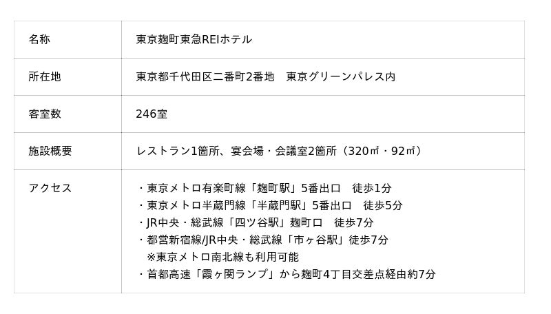「東京麹町東急REIホテル」は、2023年4月、当社がホテル運営専業会社として歩み始めて以降、「JAM福井勝山東急ホテル&リゾーツ」に続く2軒目のリブランド物件となります。