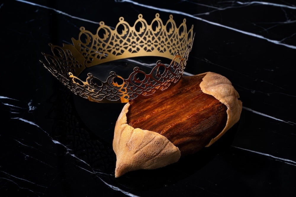 フランスで新年を彩る伝統菓子を殻付きアーモンドそっくりに仕上げたオリジナルデザインで販売。中に隠れた「フェーヴ」が当たった人は、祝福を受けると幸運が1年間継続するといわれる、縁起物のお菓子です。数量限定販売です。