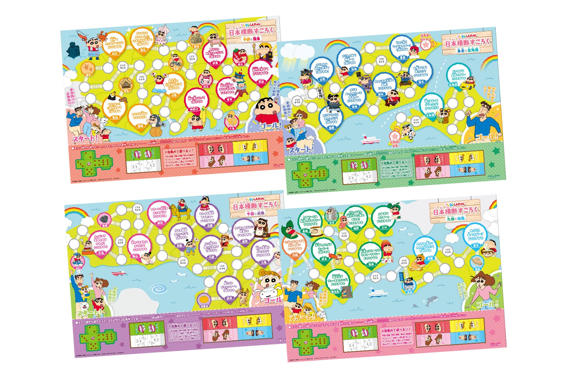 ▲ すごろくチョコビのおまけ「日本横断すごろく(全4種)」 ※商品には、全4種のうちいずれか1点が付属