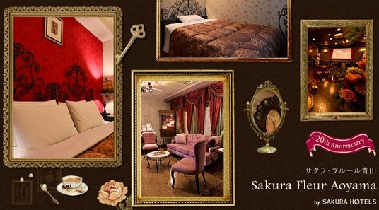 代表ホテル「サクラ・フルール青山」は、薔薇モチーフの内装やアンティーク調デザイン・柔らかな色彩設計など『女性が安心して泊まれる空間』を徹底して追求しており、渋谷エリアで長年愛されているホテルです。