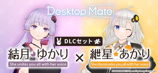 株式会社インフィニットループ(本社:北海道札幌市、代表取締役社長:小野真弘)は、デスクトップマスコットプラットフォーム「Desktop Mate」において、VOCALOMAKETS(運営:株式会社バンピーファクトリー)が展開する人気キャラクター「結月ゆかり」と「紲星あかり」を本日2025年12月9日(火)より同時リリースいたしました。さらに、両DLCをセットで購入できるお得なバンドル「結月ゆかり&紲星あかり DLCセット」も同時発売いたします。