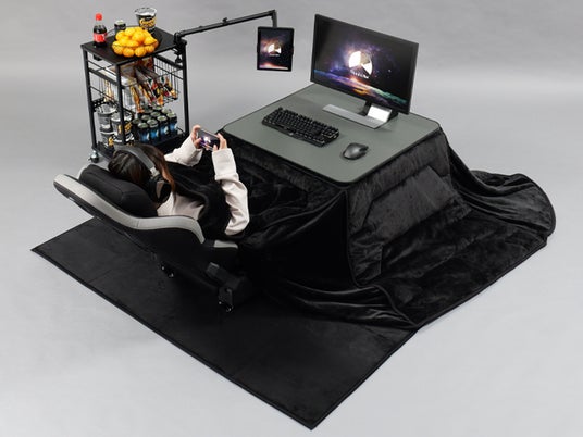 「こたつから出られない…」というゲーマーの願望を全肯定する最強の防寒スタイル。足元だけでなく、全身をぬくもりで包み込む「着る」ことができる専用布団で、従来の弱点だった胸から上や背中の寒さを解消します。リクライニング可能な座椅子と組み合わせれば、どんな堕落姿勢でも布団がずり落ちる心配はありません。必要なデバイスや飲み物は手の届くところに集約し、さらに床からの冷気を遮断するマットを敷くことで、究極のぬくぬく要塞が完成。冬の間、二度とこたつから出ない、快適なゲーム環境を構築します。