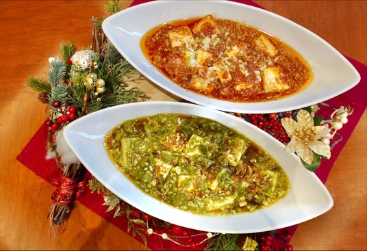 12月23日~25日には、植物性の「緑の麻婆豆腐」とともに、豚ひき肉を使用した「赤の麻婆豆腐」も提供します。クリスマスカラーの赤と緑のコントラストで、異なる食の嗜好を持つ人々が同じ食卓を囲める、特別な時間を提供します。