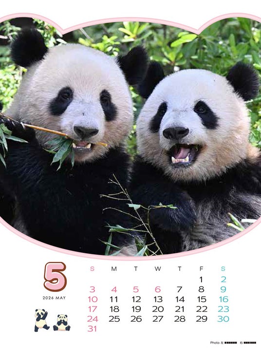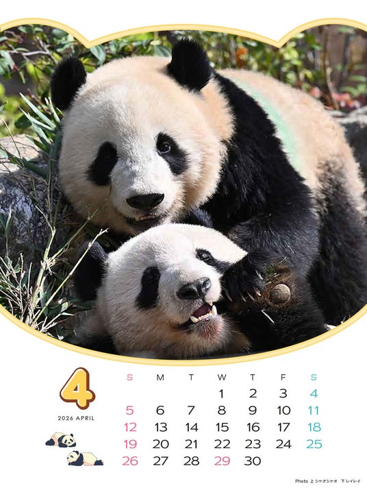 2021年6月23日に日本で誕生したシャオシャオとレイレイ。2026年2月には返還先の中国へと旅立つ「シャオシャオ・レイレイ」の思い出を詰め込んだ4月始まりカレンダーです。(掲載月:2026年4月~2027年4月)
