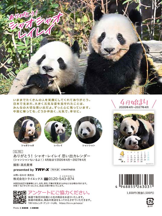 ・ありがとう!シャオシャオ・レイレイ 思い出カレンダー(2026.4.1~2027.4.30)