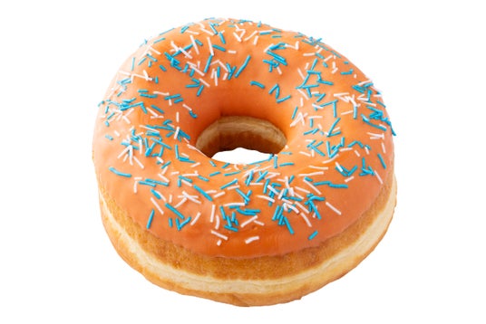 「ランディーズドーナツ」商品の中でも最大サイズ(直径約1.5倍)の「テキサス(TEXAS)」ドーナツです。爽やかなオレンジチョコをコーティングし、さらにブルーとホワイトのスプリンクルを散りばめました。見た目も味わいも楽しめる一品です。
