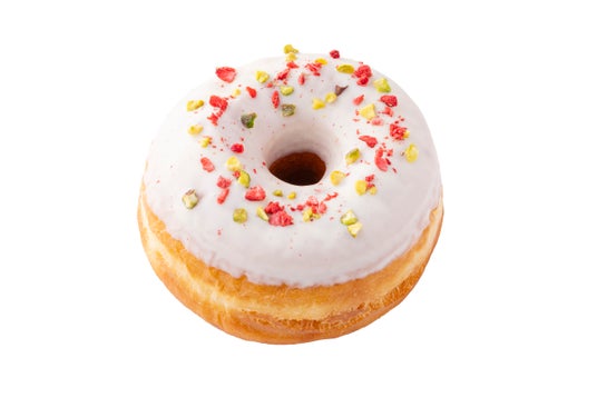 ふんわり食感と鮮やかなピンクのコーティングにカラフルなスプリンクルをトッピングしました。