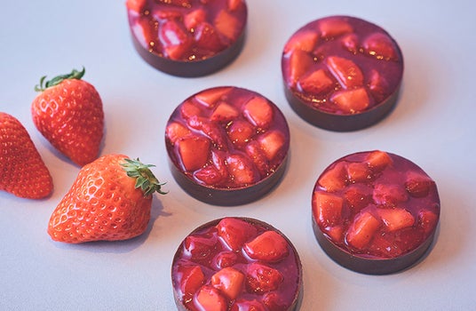 ベリーチョコレートガナッシュにブラックベリーとストロベリーコンポートをトッピング。ビターなチョコレートガナッシュとコンポートの甘さのコントラストをお楽しみいただけます。